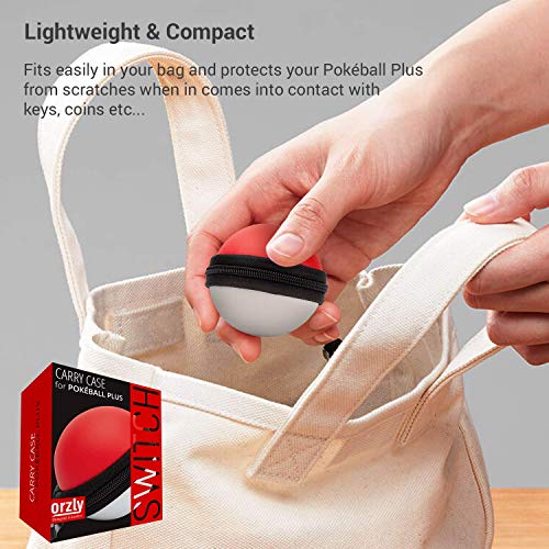 Orzly Funda para Pokebolas Pokemon para Nintendo Switch Pokeball Plus Estuche Protector con Cremallera rígida con Enganche para cinturón Colores Rojo y Blanco