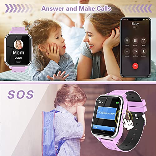 Smartwatch Niños, Reloj Teléfono con 17 Juego, Cámara, Reproductor de Música, SOS, Linterna, Despertador, Reloj Inteligente Niño con Pantalla Táctil y Protector para Niños y Niñas 4-12 Años (Morado)