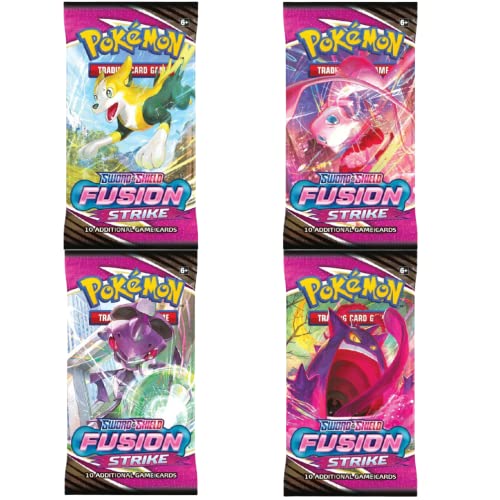- 4 paquetes de refuerzo - obtienes 4 paquetes de refuerzo en diferentes diseños del último lanzamiento de Fusion Strike de la serie Espada y Escudo