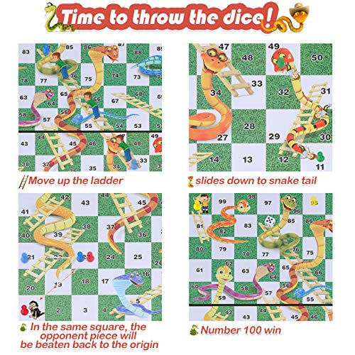 - 【1】Tamaño de la placa:9.65in*9.65in/24.5*24.5cm, Juego de mesa familiar tradicional de serpientes y escaleras para 2 a 4 jugadores