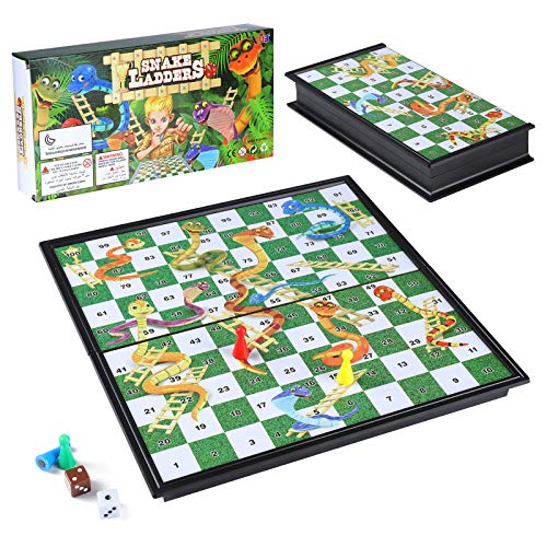 Diealles Shine Snakes and Ladders, Serpientes y Escaleras Juego de Mesa Tradicional Juego de Los Niños