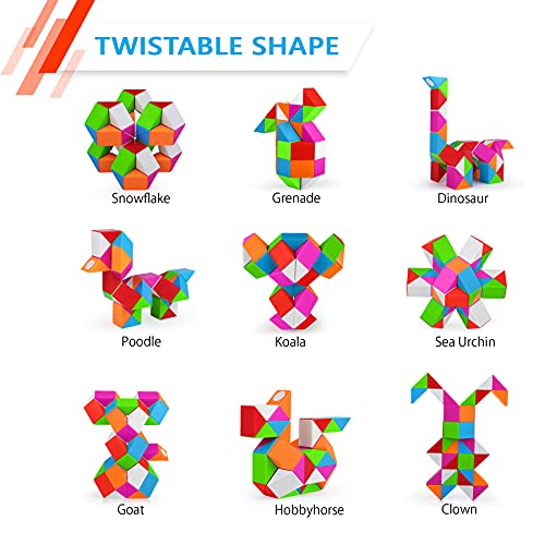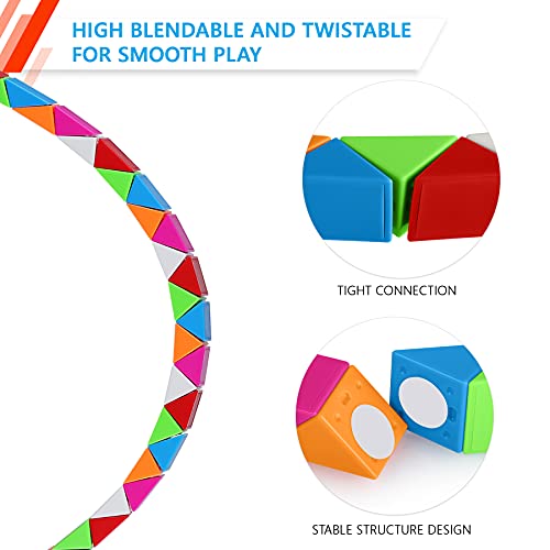 - 【Magic Twist Puzzle Toy】: Este es un cubo de serpiente mágica transformable que consta de 24 cuñas idénticas con forma de prismas. Puede transformarlo en una amplia variedad de formas, como línea recta, bola, serpiente, perro, llave o avestruz, girando el cubo de serpiente hecho de bloques triangulares, brindando desafíos y diversión a sus dedos y cerebro.(Arcoíris)