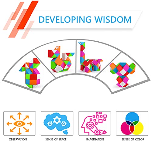 - 【Perfect Gift】Twist puzzle es perfecto para que los niños desarrollen inteligencia y los adultos alivien el estrés. El cubo mágico es un buen regalo en cumpleaños, Navidad, Día de Acción de Gracias, Halloween, Año Nuevo para niños y niñas. Consejos: toque esta regla de serpiente suavemente cuando no pueda girar en una dirección, porque tal vez necesite cambiar a otras direcciones.