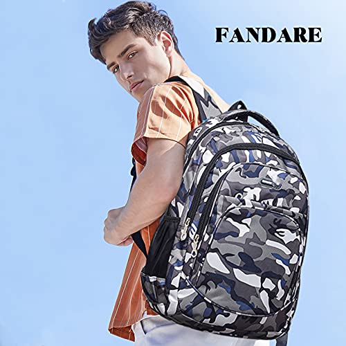 FANDARE Camo Mochila Mochilas Tipo Casual Bolsas Escolares Niña Niño Bolsa de Viaje Bolsos de Mujer Hombre Adolescente Al Aire Libre Partido Viaje Daypack Impermeable Poliéster Azul