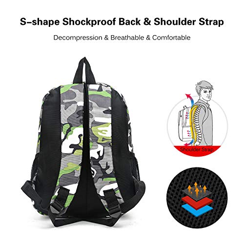 - Mochila Ligera Camo: Diseñada para ser cómoda y fácil de transportar, la mochila de viaje funciona bien como una mochila universitaria, una bolsa de gimnasio o una bolsa de uso diario. El elegante estilo Military Camo, nueva tendencia, hace que la mochila sea más única.