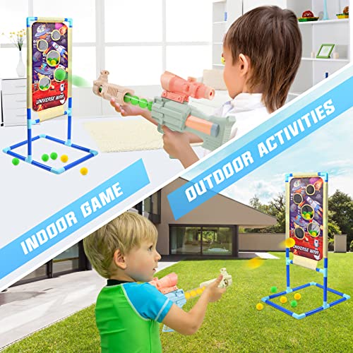 - Divertido juguete de juego de disparos: los juguetes de tiro al blanco vienen con 2 pistolas de juguete bláster, 48 bolas de espuma suave (verde y amarillo) y 1 objetivo de tiro de pie con temática de cohete. Ideal para jugar en interiores o al aire libre.