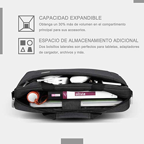 Voova 14 15 15.6 Maletín Funda para Ordenador Portátil Impermeable Bandolera para Netbooks,Expandible 30% Bolso Mensajero con Correa Extraíble Compatible con Macbook/Chromebook, Hombres/Mujeres,Negro