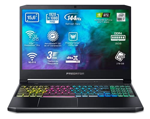 - GAMING DE ÉLITE: domina la competición con el portátil gaming Acer Predator Helios 300 gracias a la potente combinación del procesador Intel Core i7-10750H, los revolucionarios gráficos NVIDIA RTX 3060, 16 GB de memoria DDR4 y disco SSD de 1TB