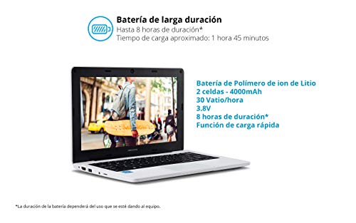 - Adaptado a todas tus necesidades: Todas tus aplicaciones favoritas de Google vienen pre-instaladas en cada Chromebook, por lo que puedes editar, descargar y convertir documentos de Microsoft Office en Google Docs, Sheets y Slides. Además, en Google Play Store podrás acceder a miles de aplicaciones para escuchar música, ver vídeos, crear contenido, trabajar y compartir archivos. (Requiere una conexión a Internet. Algunas aplicaciones son de pago.) Y todo esto con una batería que dura hasta 12 horas (puede variar en función del uso y otras condiciones).