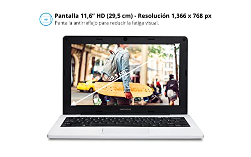 MEDION Classmate E11201 - Ordenador portátil para educación de 11,6" HD (Intel Celeron N3450, 4GB de RAM, 64GB eMMC, Intel HD Graphics, Windows 10 Pro Academic) Color Blanco - Teclado Qwerty Español