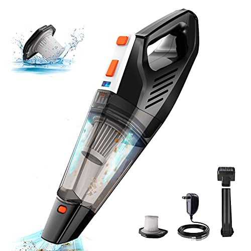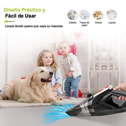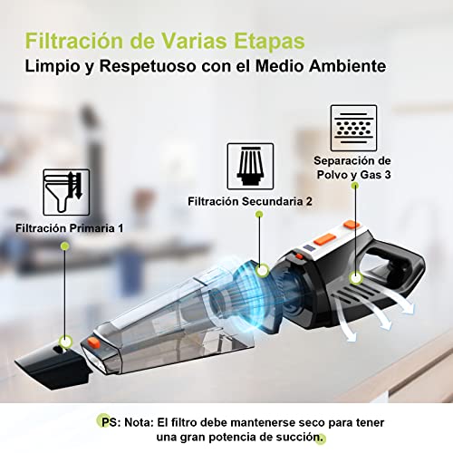 - ?【9000PA Potente Succión Ciclónica】 Nuestra aspiradora de mano equipada con un potente motor ultra alto de 100 W con succión de hasta 9 Kpa. Ideal para la limpieza diaria, incluidos pelos, polvo, pelo de mascotas y restos de papel. Una opción inteligente para limpiar de coche y oficinas y el hogar? (Doble Uso Húmedo y Seco). Proporciona una protección integral para su vida diaria.