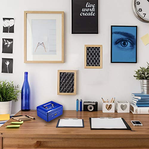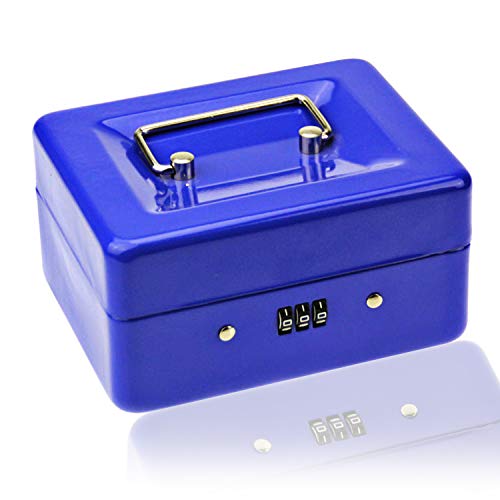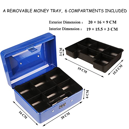 Caja Fuerte Portátil Diyife Pequeña Caja para Dinero con Portamonedas Interior para Monedas, Billetes, Cheques, Monedas, Joyas, Medicamentos, 20×16×9CM (Azul, Grande)