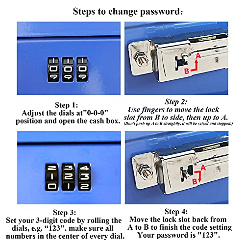 - Cerradura de combinación de seguridad mejorada: la caja de efectivo de Langtor está bloqueada por código de seguridad (cerradura de combinación de 3 números), no te preocupes por perder llaves. Con un diseño de código mejorado, no tendrás que cambiar tu caja de efectivo cada año