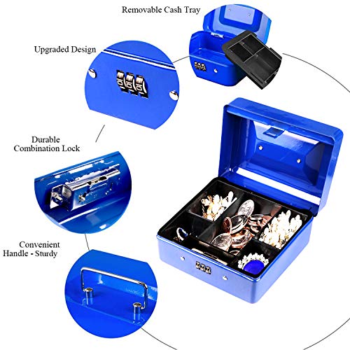 - Duradera e irrompible: la caja de efectivo combinada está fabricada con metal fuerte, que es irrompible sin contraseña. La bandeja de plástico extraíble para efectivo también está construida resistente, se adapta a dinero en efectivo, monedas, llaves o cheques. El mango duradero es lo suficientemente resistente como para llevarlo a cualquier lugar