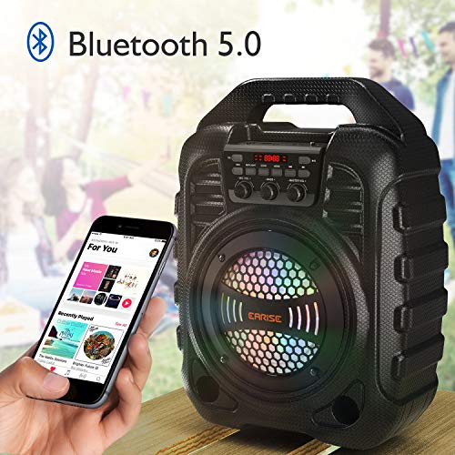 EARISE T26 Pro Máquina de karaoke con 2 micrófonos inalámbricos, sistema PA portátil Altavoz Bluetooth PA con luces LED, grabación de audio, radio FM, control remoto, soporta tarjeta TF/USB/AUX