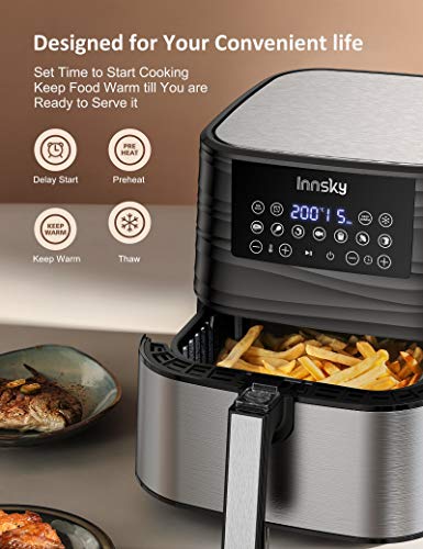 Innsky Freidora sin Aceite 1700W, 5,5L Freidora Aire Caliente con 7 Programas, Air Fryer con Función de Precalentar, Descongelar, Mantener Caliente y Cronometrar, con Recetas, Pantalla LED Táctil