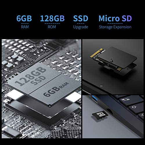 Laptop de 13,3 Pulgadas (Intel Celeron J3455 de 64 bits, 6GB DDR3 RAM, SSD de 128GB, batería de 10000mAH, cámara Web HD, Windows 10, Pantalla 1920 * 1080 FHD IPS)
