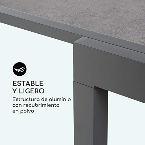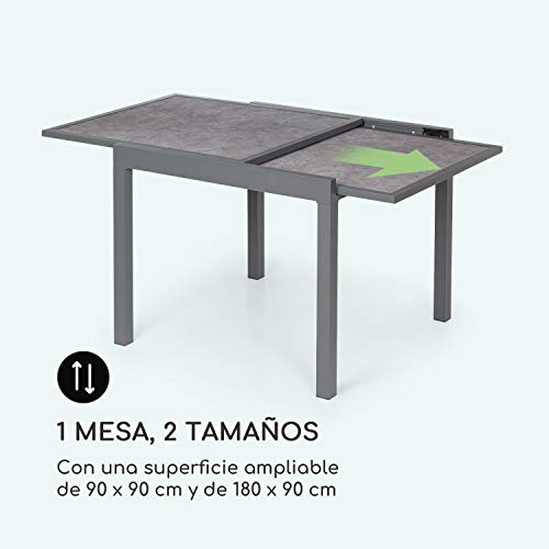 blumfeldt Tenerife – Mesa de Exteriores, Mesa Extensible, Hecha de Aluminio, Vidrio endurecido, fácil de Montar, EasyStone Finish: estética de Piedra Natural, tamaño máximo de 180 x 90 cm, mármol