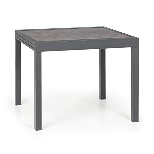 - CALIDAD: La mesa para exteriores Tenerife puede pasar de una mesa de 90 x 90 cm en una de 180 x 90 cm para tener más espacio. La tabla de la mesa está hecha de vidrio endurecido de 5 mm de grosor que resiste al mal tiempo y es fácil de limpiar.