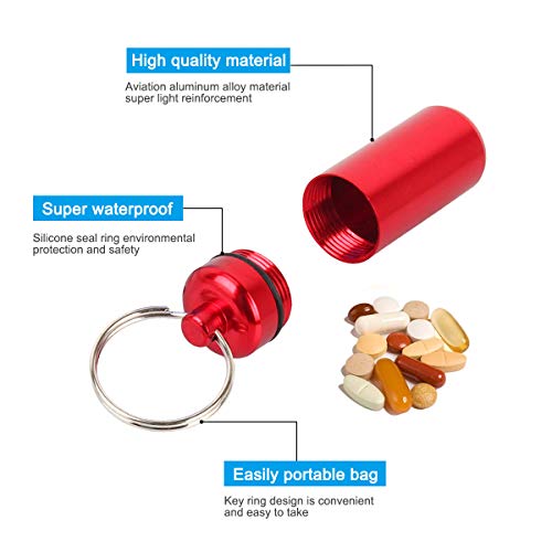 NATUCE 6PCS P llaveros pastilleros estancos, Caja de Pastillas de aleación de Aluminio, astillero Píldoras Llavero Caja Botella Contenedor De Aluminio, Impermeable Mini Pastillero para la Medicación