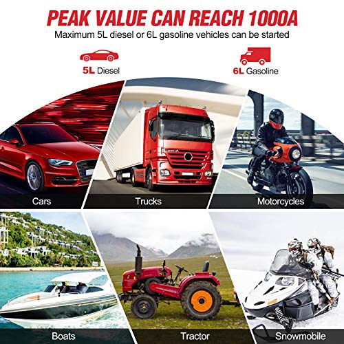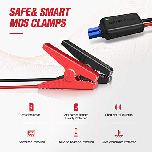 - ? Pinzas inteligentes: Con las pinzas inteligentes, este arrancador de automóvil tiene múltiples protecciones: protección contra sobrecarga / cortocircuitos / polaridad de la batería / sobretemperatura / carga inversa / sobretensión, y protección de antiacceso, lo hacen más seguro de usarlo