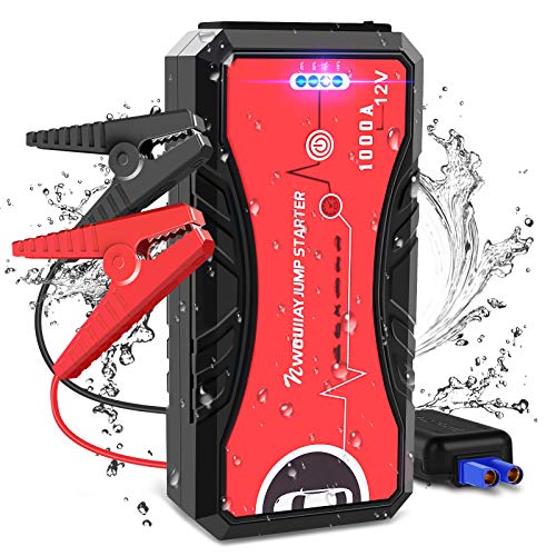 NWOUIIAY Arrancador de Coches 13200mAh 1000A Arrancador Batería Coche MAX 6.0L Gas o 5.0L Diesel 12V Jump Starter Portátil con Pinzas Inteligentes 4 Modos Luz Carga Rápida QC3.0 & Type-C