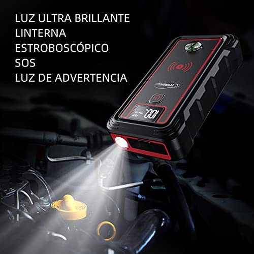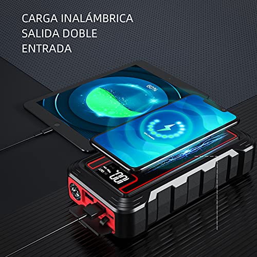 - ?【Cómoda carga inalámbrica】Si olvida llevar un cable de carga, este arrancador de coches es su mejor opción, soporta 10 W de carga a dispositivo inalámbrico con capacidad de carga (dispositivos Qi inalámbricos). Este arrancador de coche soporta carga rápida de entrad por lo que puede cargar smartphones, cámaras, kindle y otros dispositivos con salida doble y una entrada.
