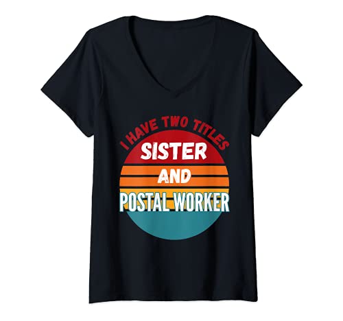 Mujer Tengo dos títulos hermana y trabajadora postal Camiseta Cuello V