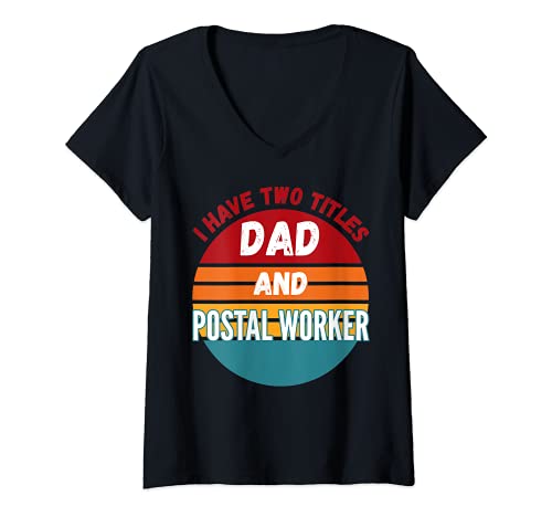 Mujer Tengo dos títulos papá y trabajador postal Camiseta Cuello V