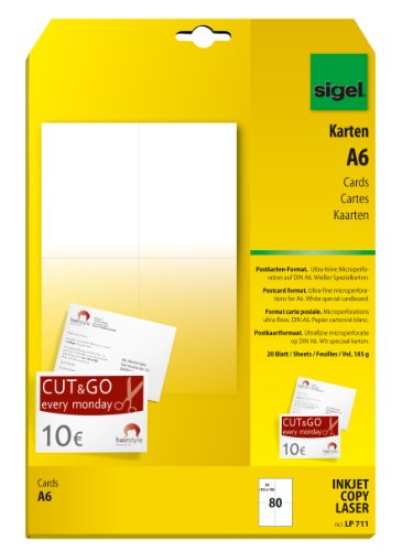 SIGEL LP711 Tarjetas postales para PC impresión por las dos caras, A6 (A4), 185 g, 80 unds.=20 hojas