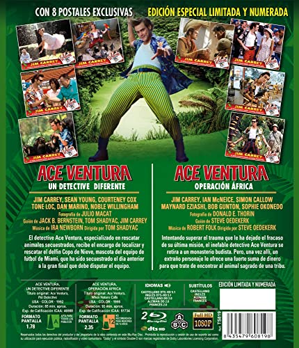 Ace Ventura, Un detective Diferente + Ace Ventura: Operación África. Ace Ventura 1 y 2 Digipack BD + 8 Postales Edición Limitada y Numerada. [Blu-ray]