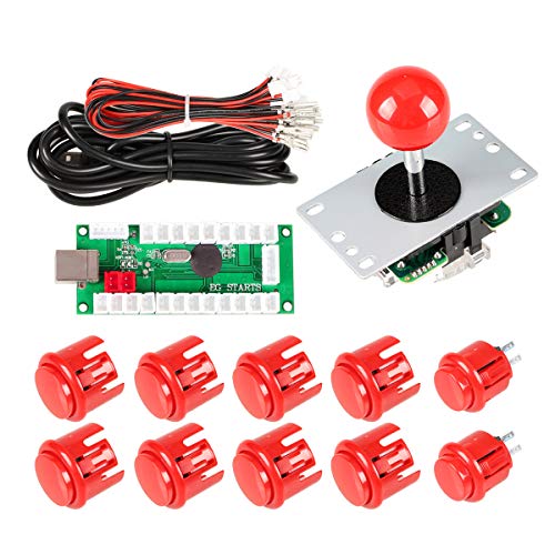 EG STARTS Zero Delay Arcade DIY Handle Kit Parts USB Encoder para PC Juegos 5 Pines Joystick + 24mm 30mm Botones para Arcade Cabinet Mame & Raspberry pi 2 3B Model Project (Red)