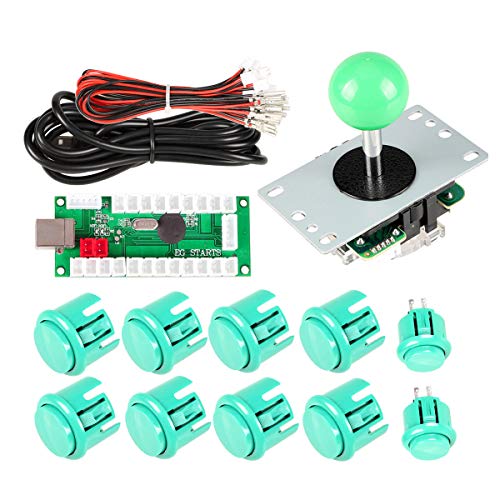 EG STARTS Zero Delay Arcade DIY Handle Kit Parts USB Encoder to PC Juegos 5 Pines Joystick + 24mm 30mm Botones pulsadores para Arcade Cabinet Mame & Raspberry pi 2 3B Model Project (Verde)