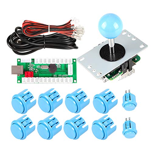 EG STARTS Zero Delay Arcade DIY Handle Parts Parts USB Encoder to PC Juegos 5 Pines Joystick + 24mm 30mm Botones pulsadores para Arcade Cabinet Mame & Raspberry pi 2 3B Model Project (Azul)