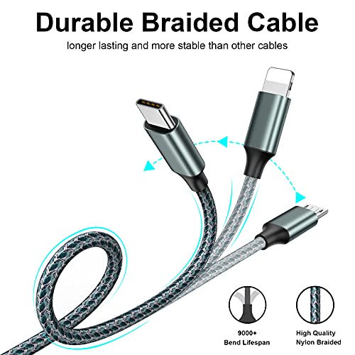 - 【Fortalece el diseño de durabilidad】 Revestido con fibra de nailon trenzado fuerte, que lo hace tener una excelente propiedad anti-torsión y a prueba de abrasión. Este cable cargador múltiple puede soportar al menos 9,000 ciclos de prueba de flexión de 90 grados. Muy adecuado para su uso diario.