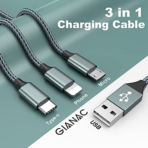 3 en 1 Multi Cable de Carga, [1.2M] Multi USB Cargador Cable Nylon Múltiples Micro USB Tipo C para Android Samsung Galaxy S9/ S8/ S7/ A5, Huawei P20, Honor, Kindle, LG, Son-Green