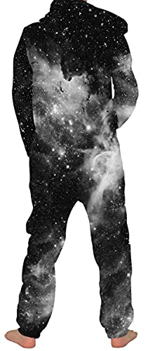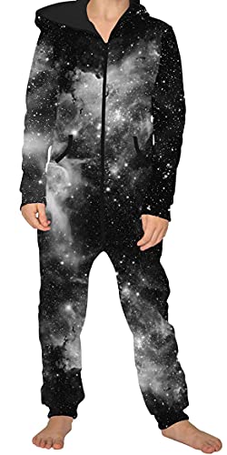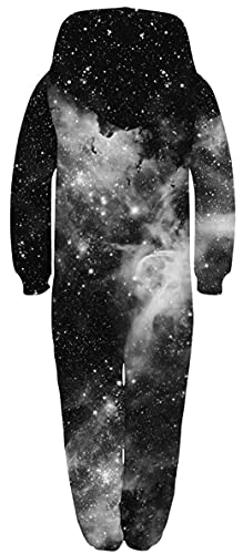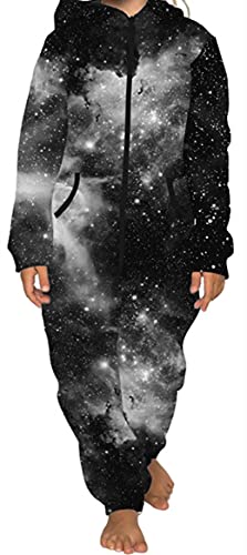 Ocean Plus Unisex Niños Mono de Manga Larga con Cremallera y Capucha de Forro Polar para Niñas con Impresión Digital (Altura: 125-130cm, Galaxia Negra)