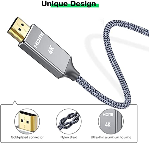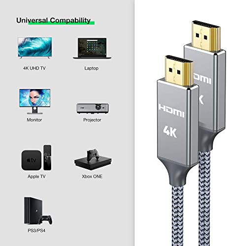 Cable HDMI 4K 2metro-Snowkids Cable HDMI 2.0 de Alta Velocidad Trenzado de Nailon 4K@60Hz a 18Gbps Cable HDMI Compatible 3D, Función Ethernet, Video 4K UHD 2160p, HD 1080p- Gris