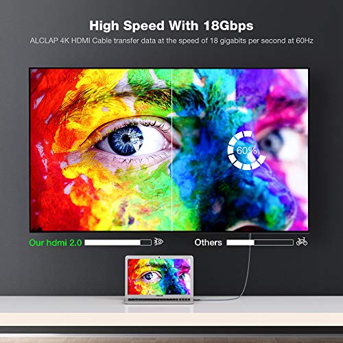 - ?【De alta velocidad Cable HDMI】El Cable HDMI 2.0 de alta velocidad actualizado transmite datos a altas velocidades de hasta 18 Gbps de ancho de banda. El ALCLAP Cable HDMI admite el modo espejo y extendido, Ultra HD 4K 2160p, HD 2K 1080p, QHD 1440p, HDCP 2.2, 48 bits de profundidad Color, Audio Return (ARC), audio Dolby TrueHD 7.1 y conexión en caliente.