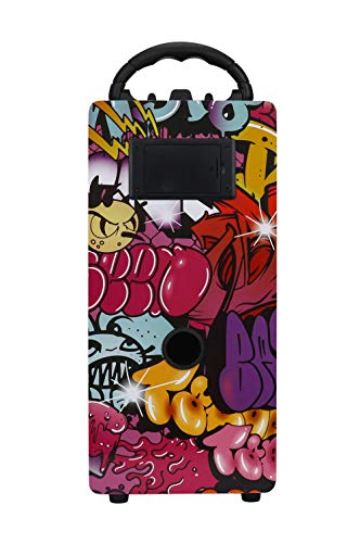 - Sus medidas (alto: 29 cm, ancho: 14 cm, profundidad: 12 cm: lo hacen fácilmente portable, muy cómodo de usar e ideal para divertirse con amigos con modo karaoke, gracias al cual podemos enchufar dos micrófonos. Altavoces con micrófono ideales como juguetes para niños o para niñas gracias al microfono