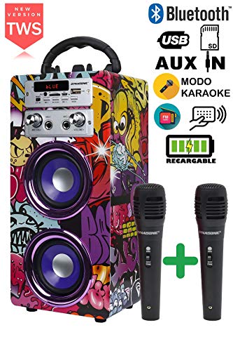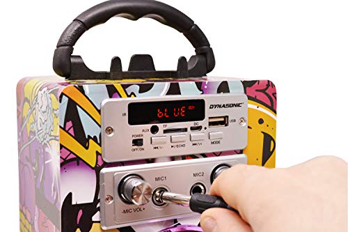 DYNASONIC - (3ª Gen) Altavoz Bluetooth Portatil con Modo Karaoke y Micrófono, Radio FM y Lector USB SD (Modelo 12, 2 Micrófonos)