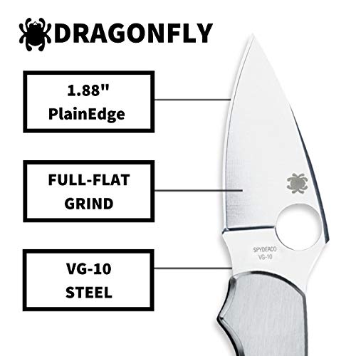 Spyderco Dragonfly Signature 5.54" Folding Knife with 2.32" VG-10 Steel Blade and Durable Stainless Steel Handle - PlainEdge Grind - C28P
