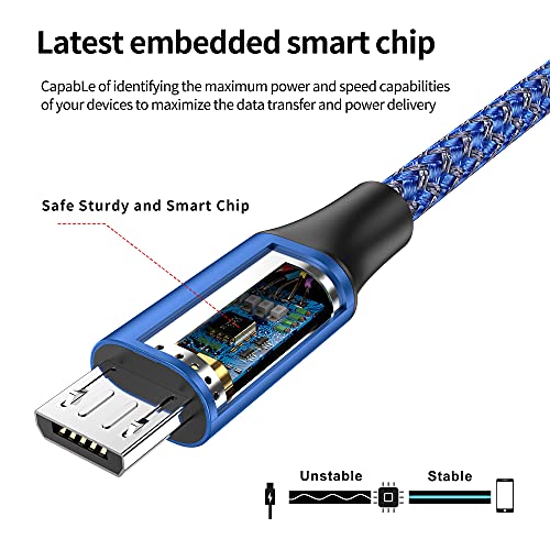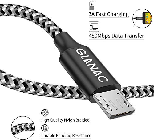- [Mayor durabilidad] : cable micro usb han pasado más de 10000 pruebas plegable del cable, el exterior de nylon trenzado es bastante robusto y flexible. El conector de aluminio es lo suficientemente robusto como para que se mantenga en buena condición por mucho tiempo y promete conexiones perfectas.
