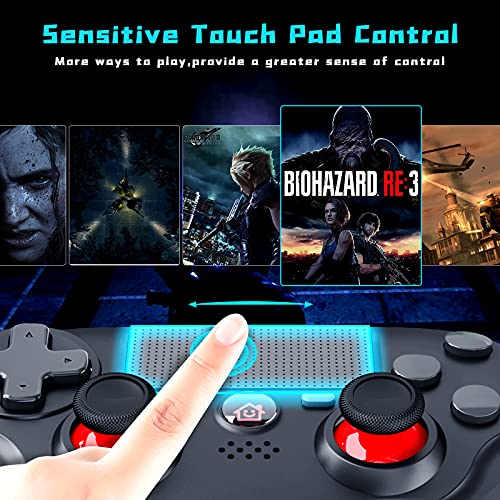 - 【Alto Rendimiento】 El controlador del juego está compuesto por un sensor giroscópico de 6 ejes y un sensor de aceleración 3D. Las funciones del botón táctil y del panel de PS4 ofrecen al jugador formas completamente nuevas de jugar. efectos de sonido de fidelidad en juegos.