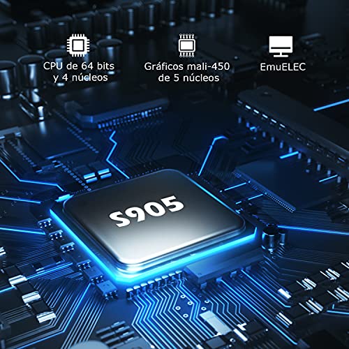 - 【Actualice el chip S905】 Esta consola de juegos portátil equipada con una versión mejorada del chip S906, resuelve el problema del retraso en el juego. Actualice el sistema EmuELEC El sistema de código abierto permite agregar juegos usted mismo.