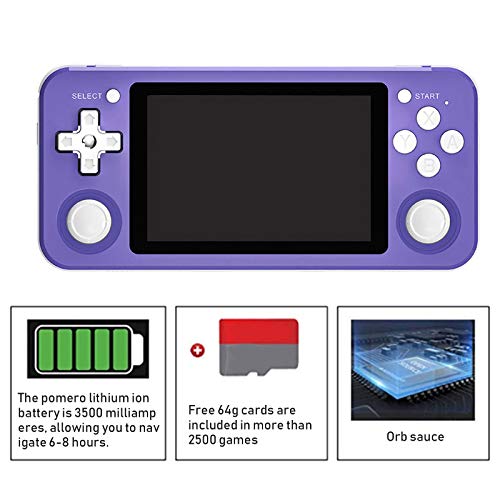 RG351P Consolas de Juegos Portátil , Consola de Juegos Retro Game Console 3.5 Pulgadas IPS Videojuegos Portátil Free with 64G TF Card Built-in 2500 Juegos Support PSP / PS1 / N64 / NDS - Purple