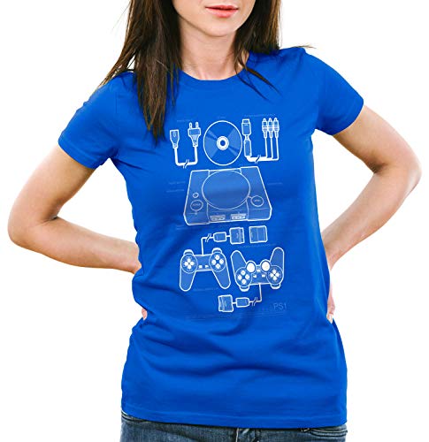 style3 PS1 Retro Gamer Camiseta para Mujer T-Shirt Mando videoconsola, Color:Azul, Talla:XS