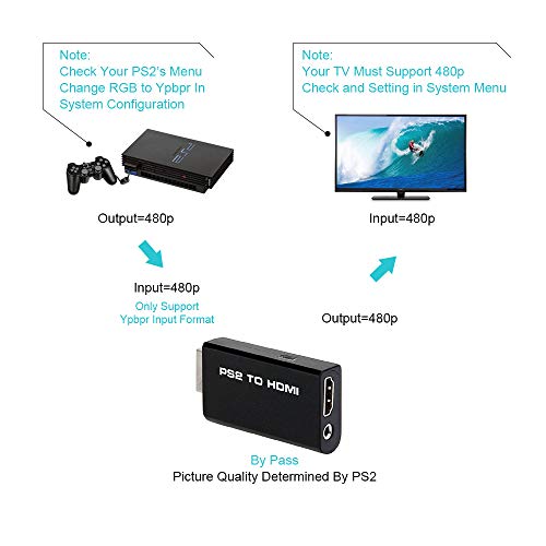 - Please make sure to change the setting of the console from below video , otherwise the PS2 will have black screen, Please google How to Setup the PS2 to HDMI adapter converter to see the video