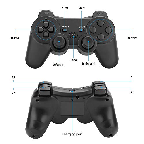 Diswoe Mando Inalámbrico para PS3 Controller Bluetooth con Función SIXAXIS y Doble Vibración, Wireless Rechargable Bluetooth Gamepad Remote Joystick Controller Gamepad para Sony PS3 Playstation 3
