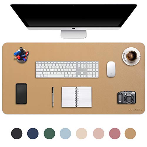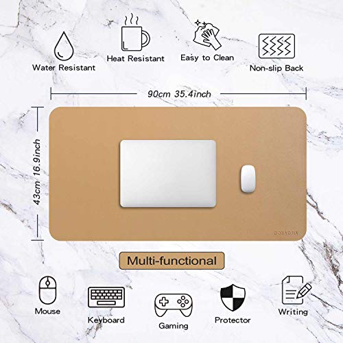 DOBAOJIA Alfombrilla de Ratón Mousepad XXL, Tapete de Escritura Estera Oficina Alfombrilla de Escritorio Protector Escritorio, Cuero PU Impermeable+Gamuza Antideslizante 90 x 43cm (Caqui)